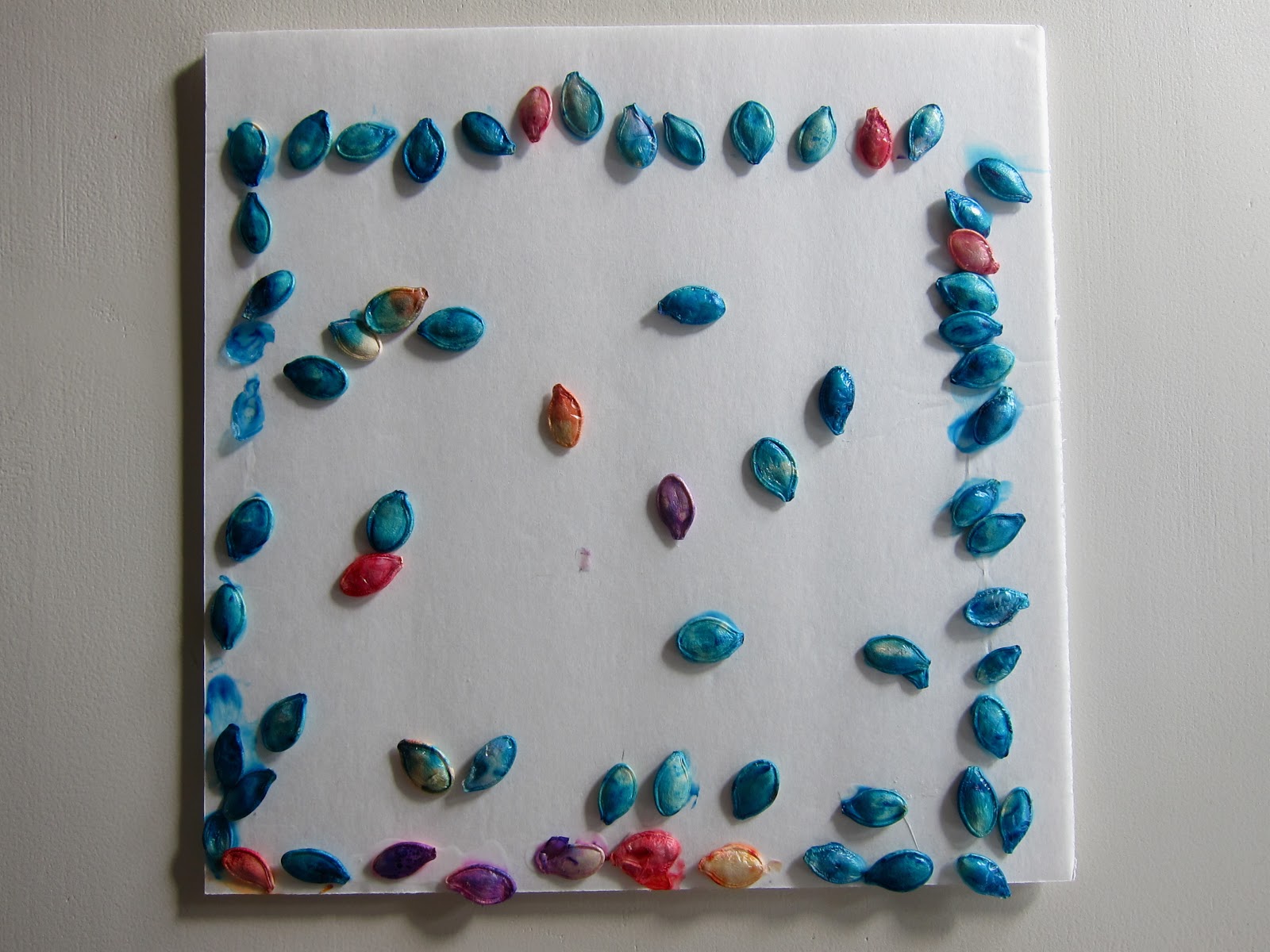After the seeds had dried the kids glued them to foam board - we have lots of this laying around but I'm sure study paper would work just fine.